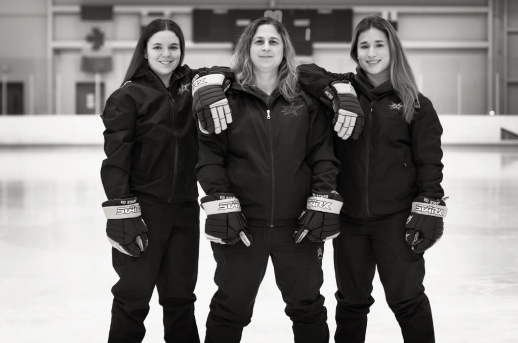 Anne (au centre) entre les entraîneurs adjoints des Stars de l’Est d’Ottawa U18AA.