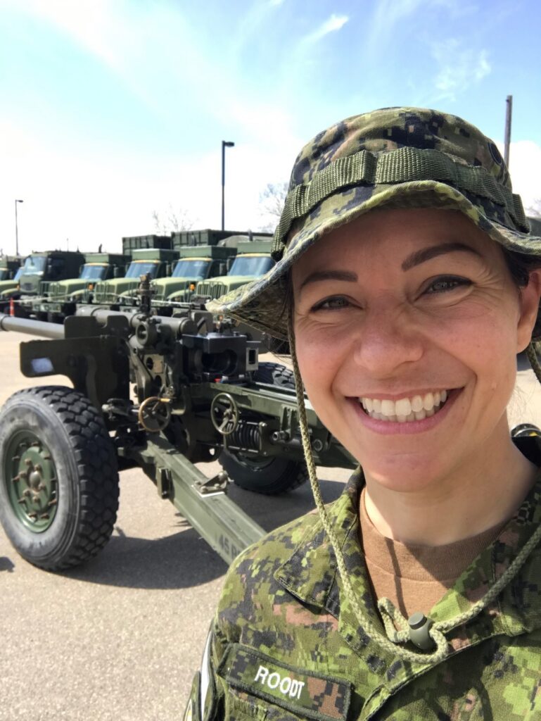 « Je travaille à la GRC et aux FAC depuis près de cinq ans. J’ai le grade de bombardière – artillerie, une branche des Forces armées qui utilise des armes lourdes pour tirer des projectiles remplis d’explosifs sur des distances de plus de 10 km. Le but de l’artillerie est d’appuyer d’autres armes dans une situation de combat ou d’attaquer une cible, surtout en profondeur. L’artillerie peut avoir différentes missions, comme supprimer ou neutraliser les tirs ennemis,frapper des cibles de grande valeur, diviser les concentrations de la force ennemie etfournir un appui-feu pour la guerre de manœuvre. »