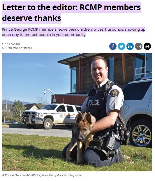 Le directeur de la FPN de la région du Pacifique et du Nord et membre de la GRC, Chris Voller, en a fait état dans une lettre à la rédaction du Prince George Citizen en mars 2023.